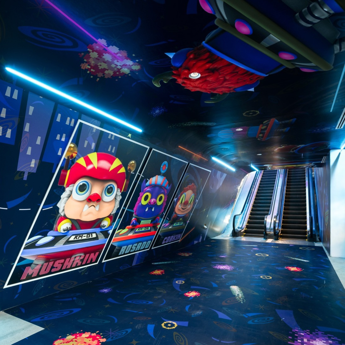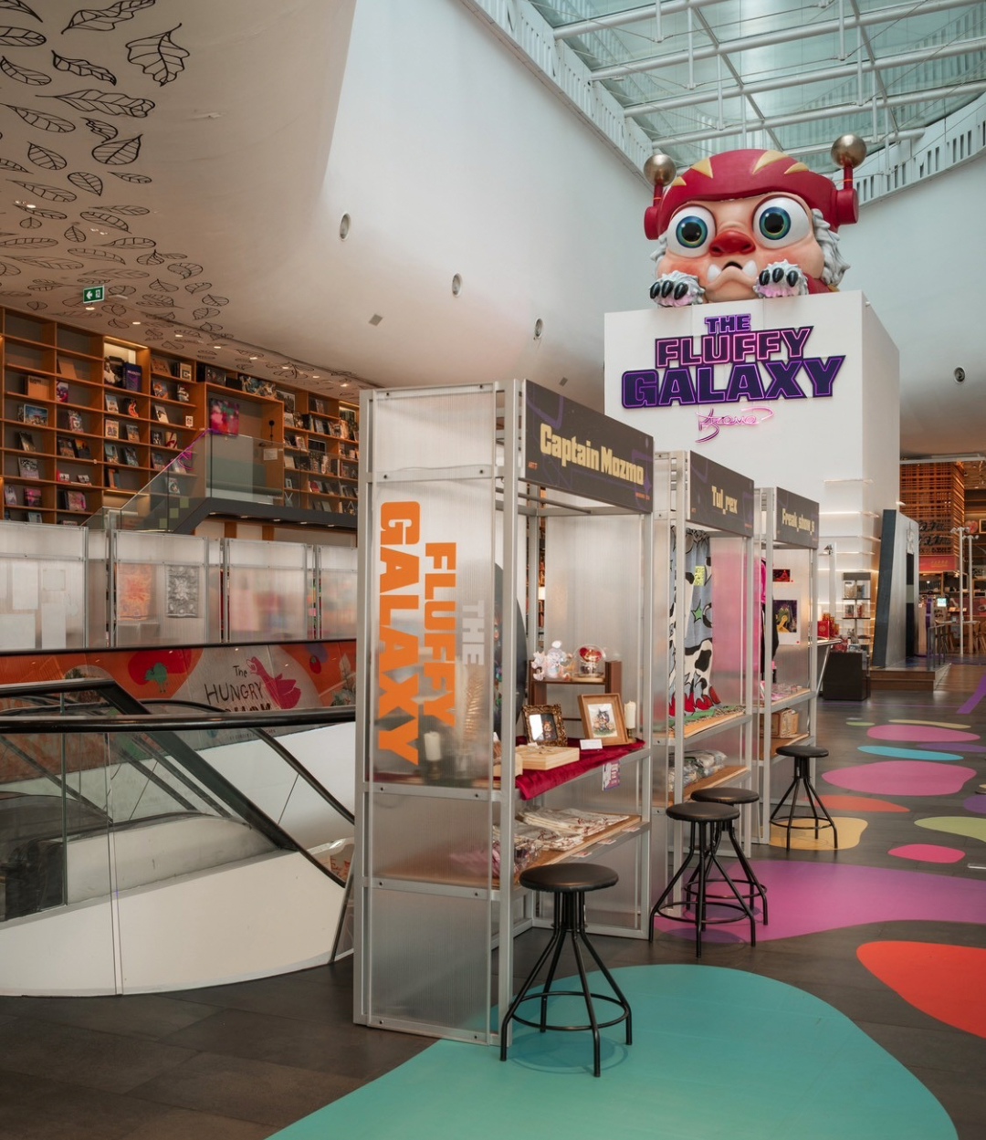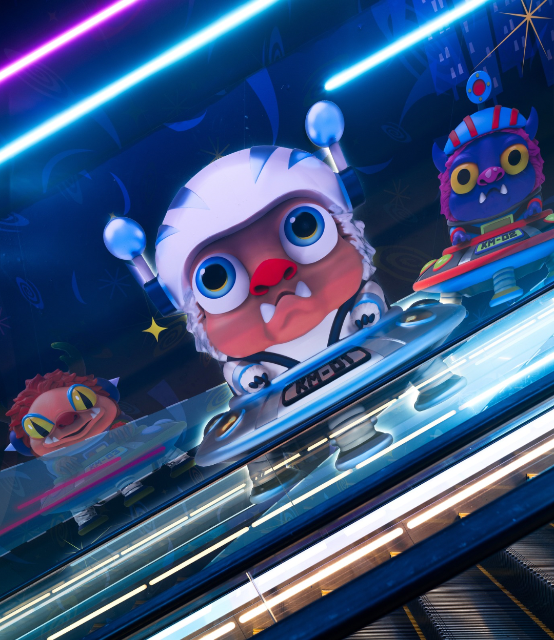 ถัดมา เมื่อก้าวเข้าสู่พื้นที่ชั้น 6 หัวใจสำคัญของจักรวาลแห่งนี้พร้อมเผยให้เห็นสนามบรรเลงความคิดสร้างสรรค์สไตล์ ‘Retrofuturism’ ที่ผสานภาพลักษณ์ไซไฟล้ำสมัยเข้ากับกลิ่นอายเรโทรยุค 80s อย่างลงตัว ถ่ายทอดเรื่องราวของ KOOKY WORLD คอมมูนิตี้มอนสเตอร์ขนฟูที่รวบรวมตัวละครหลากหลายอัตลักษณ์ไว้ด้วยกัน ชวนให้ตื่นตาตื่นใจไปกับ COSMIC APEX & SECRET LAB บริเวณ Book Tower ที่รายล้อมด้วย Lightbox มอนสเตอร์หลากดีไซน์ และฐานปฏิบัติการลับที่จัดแสดงพร้อมเปิดให้จับจองชิ้นงานสุดแรร์และเอ็กซ์คลูซีฟครั้งแรกที่นี่ที่เดียว จากนั้นนำไปสู่แลนด์มาร์กสำคัญที่ UFO STATION & MERCH POP-UP จุดจอดยานอวกาศบนยอด Art Tower ที่โดดเด่นด้วย Sculpture Mushkin ขนาดยักษ์ในชุดนักบินอวกาศ คอยต้อนรับผู้มาเยือนอย่างเป็นมิตร มาพร้อมยานอวกาศคู่ใจ พร้อมพื้นที่ Merch Pop-Up ให้ได้เป็นเจ้าของสินค้าลิขสิทธิ์สุดพิเศษ