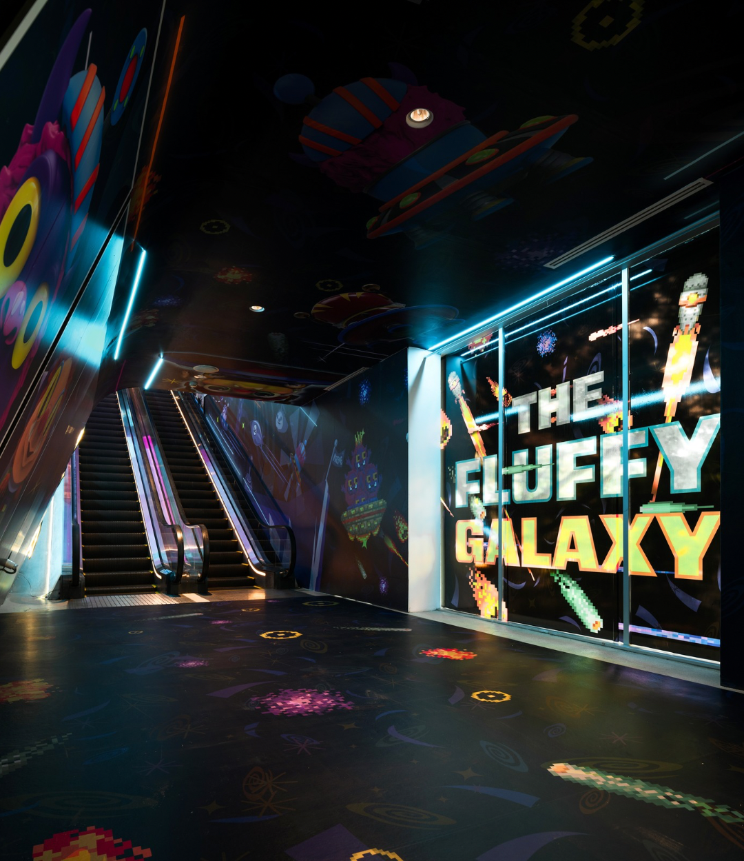 ภายในจักรวาลแห่งนี้ นักเดินทางต่างสัมผัสได้ถึงจุดกำเนิดของสรรพสิ่งผ่านสีสันแห่งจินตนาการและมิตรภาพแห่งการผจญภัย โดยการเดินทางเริ่มต้นขึ้นที่ THE FLUFFY WORMHOLE อุโมงค์ทะลุมิติบริเวณทางเชื่อมชั้น 2 จากเซ็นทรัล ชิดลม ไปยัง เซ็นทรัล เอ็มบาสซี ที่ถูกเนรมิตด้วยลวดลายสตรีทอาร์ตและเฉดสีเรโทรผสานกลิ่นอายอวกาศ พร้อมการตกแต่งต่อเนื่องบริเวณชั้น 3-5 ที่พร้อมพาทุกคนเดินทางร่วมไปกับแก๊งมอนสเตอร์ (จัดแสดงถึง 31 ม.ค. 69) ก่อนวาร์ปเข้าสู่หัวใจสำคัญ ณ OPEN HOUSE ชั้น 6