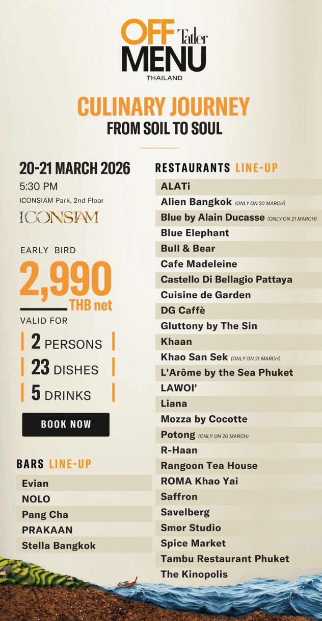 ซื้อบัตรเลยที่ Megatix หรือ https://megatix.in.th/events/tatler-off-menu-2026-at-iconsiam