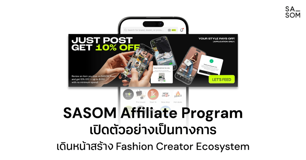 SASOM เดินหน้าสร้าง Fashion Creator Ecosystem เปิดตัว Affiliate Program อย่างเป็นทางการ เดินหน้าสร้าง Fashion Creator Ecosystem ที่เชื่อมต่อ Creator ผู้บริโภค และตลาดแฟชั่นเข้าไว้ด้วยกันอย่างเป็นระบบ