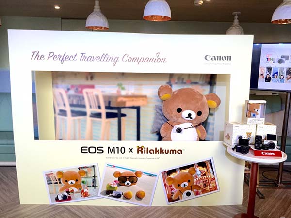 การจับคู่กล้อง CANON EOS M10 กับตัวการ์ตูนคาแรกเตอร์ยอดนิยมอย่างริลัคคุมะ เป็นการผสานการถ่ายภาพกับความน่ารักของตุ๊กตาได้อย่างลงตัว เพราะกล้อง Canon EOS M10 เป็นกล้องมิเรอร์เลสในตระกูล EOS M ของแคนนอนที่ขนาดเล็กกะทัดรัดพกพาได้ทุกที่ พร้อมเซ็นซอร์ APS-C ความละเอียด 18 ล้านพิกเซล และระบบออโต้โฟกัส Hybrid CMOS AF II พร้อมจับภาพช่วงเวลาสำคัญได้อย่างฉับไว ได้ภาพคุณภาพเยี่ยม ใช้งานง่าย และมีลูกเล่นให้เลือกมากมาย