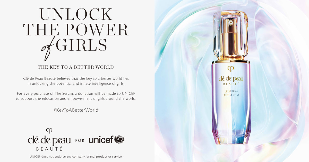 Clé de Peau Beauté (เคลย์ เดอ โป โบเต้) ในฐานะส่วนหนึ่งของพันธกิจช่วยเหลือเพื่อนมนุษย์ระยะยาว ได้สมทบทุนจากรายได้ส่วนหนึ่งจากยอดจำหน่ายผลิตภัณฑ์ Le Serum เฟิร์สสเต็ปเซรั่ม ที่ช่วยจุดประกายผิวให้แลดูเรเดียนท์กระจ่างใสไปพร้อมกับการฟื้นบำรุงผิวให้แลดูอ่อนเยาว์ ให้กับทางทางองค์การ UNICEF เพื่อเป็นกุญแจปลดล็อคในการมอบโอกาสทางการศึกษาให้กับเด็กผู้หญิงที่ด้อยโอกาสทั่วโลก