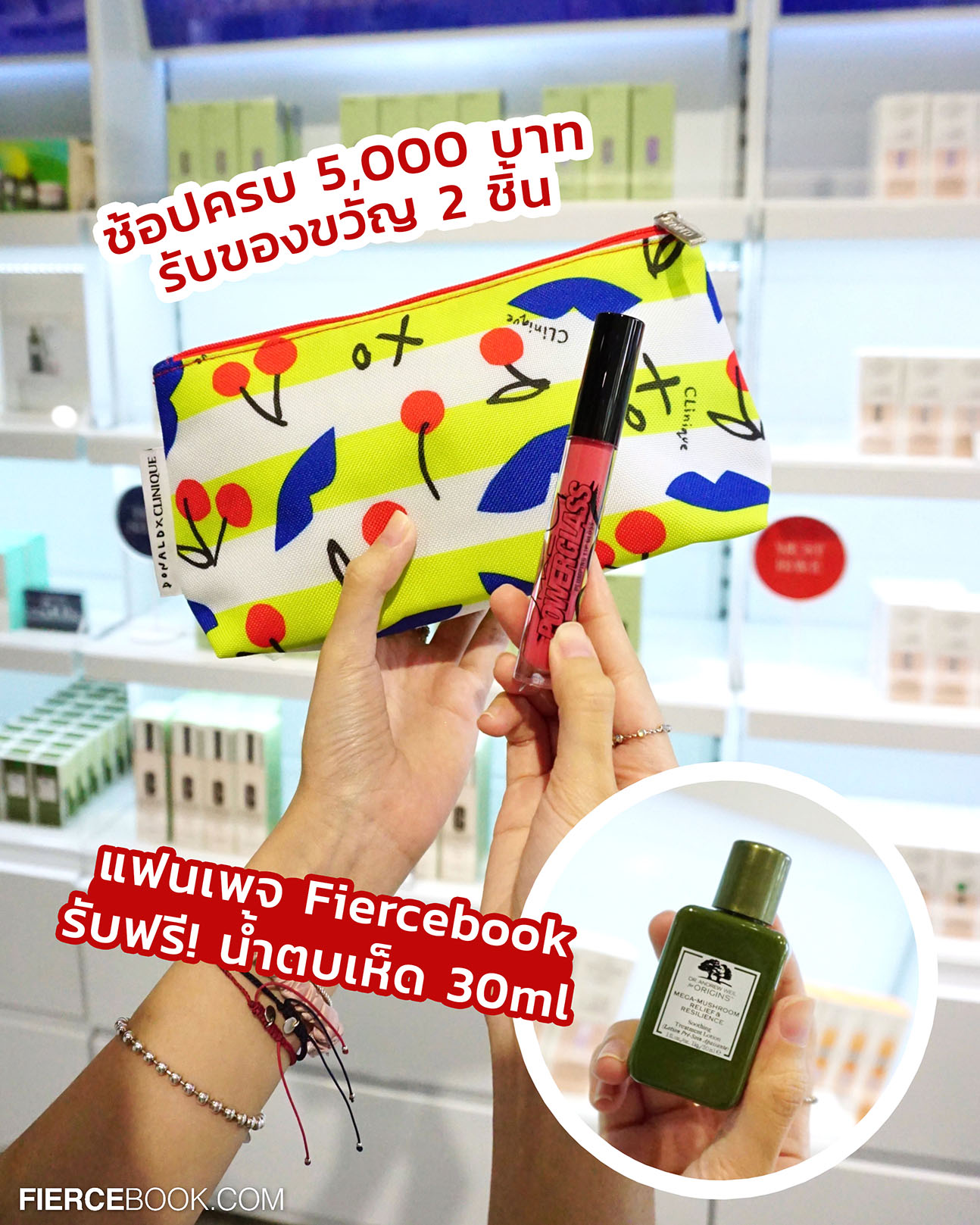 - ช้อปครบ 5,000 บาทขึ้นไป รับฟรี! กระเป๋าเครื่องสำอาง CLINIQUE Cosmetic และลิปกลอส MAC (จำนวนจำกัด)