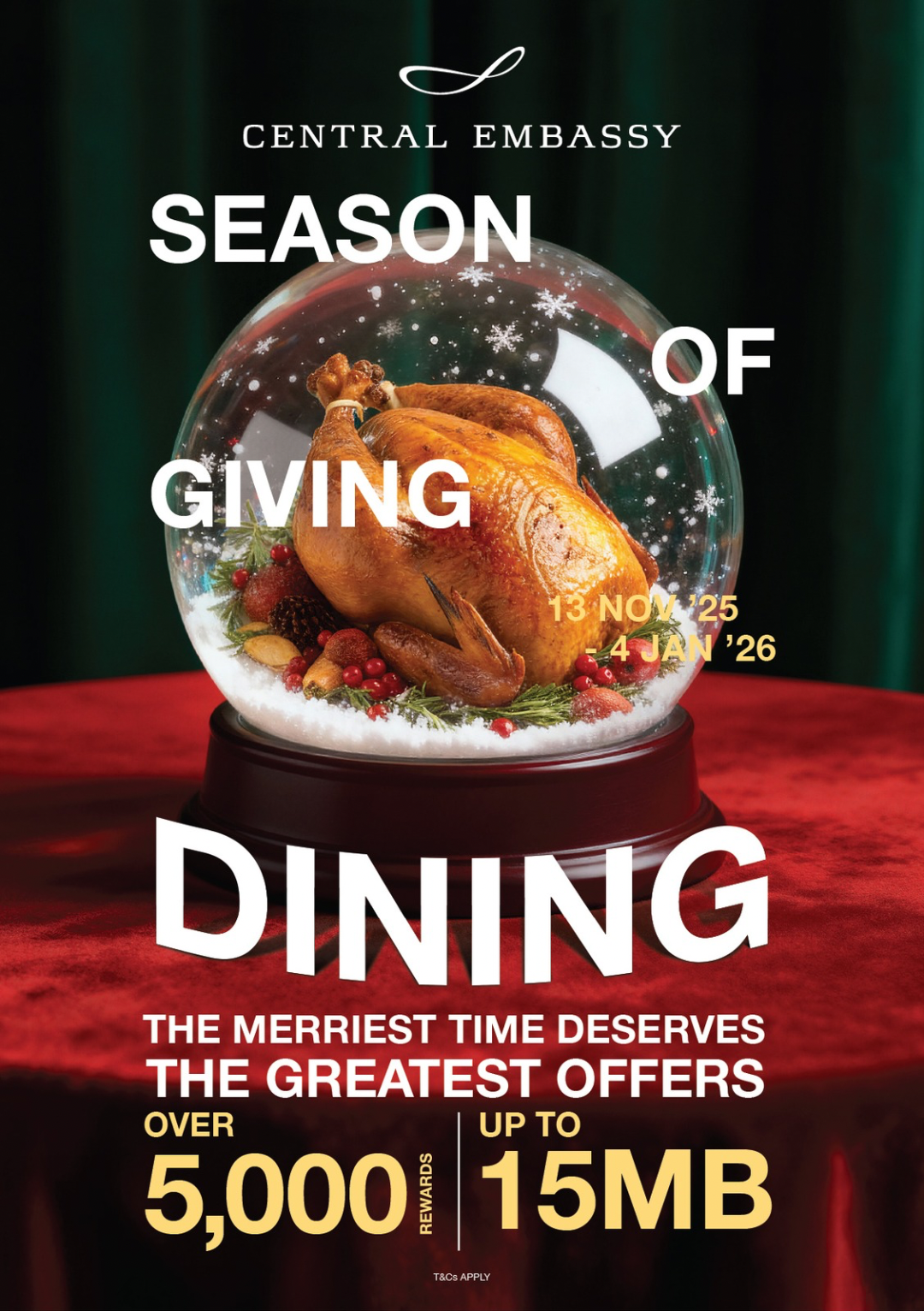 DINING เติมเต็มความสุขทุกมื้ออาหาร รับ Central Embassy Dining Voucher และสำหรับผู้ถือบัตรเครดิต Central The 1 รับ Cash Back รวมสูงสุด 11,800 บาท (จำกัด 2,770 รางวัลตลอดรายการ)