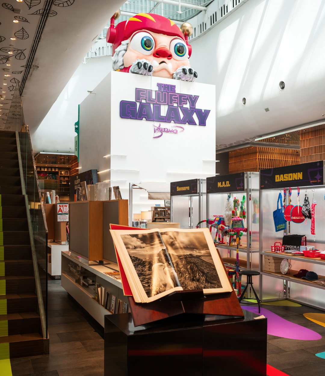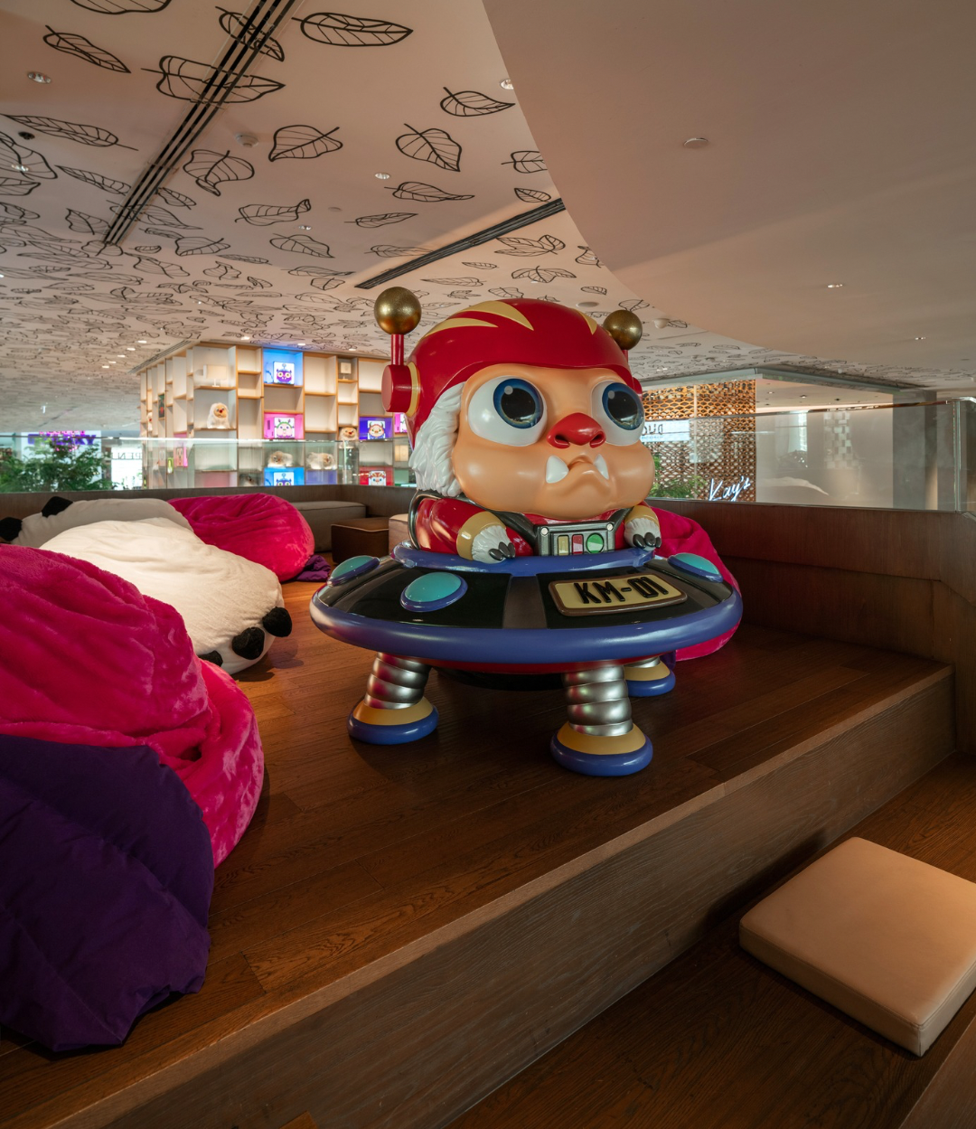 ถัดมา เมื่อก้าวเข้าสู่พื้นที่ชั้น 6 หัวใจสำคัญของจักรวาลแห่งนี้พร้อมเผยให้เห็นสนามบรรเลงความคิดสร้างสรรค์สไตล์ ‘Retrofuturism’ ที่ผสานภาพลักษณ์ไซไฟล้ำสมัยเข้ากับกลิ่นอายเรโทรยุค 80s อย่างลงตัว ถ่ายทอดเรื่องราวของ KOOKY WORLD คอมมูนิตี้มอนสเตอร์ขนฟูที่รวบรวมตัวละครหลากหลายอัตลักษณ์ไว้ด้วยกัน ชวนให้ตื่นตาตื่นใจไปกับ COSMIC APEX & SECRET LAB บริเวณ Book Tower ที่รายล้อมด้วย Lightbox มอนสเตอร์หลากดีไซน์ และฐานปฏิบัติการลับที่จัดแสดงพร้อมเปิดให้จับจองชิ้นงานสุดแรร์และเอ็กซ์คลูซีฟครั้งแรกที่นี่ที่เดียว จากนั้นนำไปสู่แลนด์มาร์กสำคัญที่ UFO STATION & MERCH POP-UP จุดจอดยานอวกาศบนยอด Art Tower ที่โดดเด่นด้วย Sculpture Mushkin ขนาดยักษ์ในชุดนักบินอวกาศ คอยต้อนรับผู้มาเยือนอย่างเป็นมิตร มาพร้อมยานอวกาศคู่ใจ พร้อมพื้นที่ Merch Pop-Up ให้ได้เป็นเจ้าของสินค้าลิขสิทธิ์สุดพิเศษ