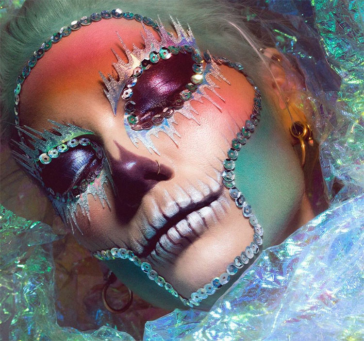 ลุคหัวกะโหลกจริงๆ ฮิตแต่งกันมาทุกปี แต่ปีสีพาสเทลมาแรง ทำให้หัวกะโหลกสามารถมาในโทนพาสเทลสุดหวานได้ ติดจิวเวลรี่เพิ่มเข้าไปยิ่งแซ่บค่ะ ถ้าเป็นงานที่ต้องแต่งหน้าแน่นมากๆ แนะนำลุคนี้เลย มงลงแน่นอนค่าาา