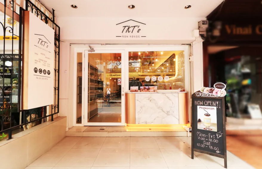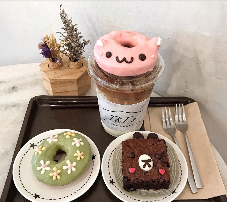 มากันที่ย่านสีลมอีกร้านกันดีกว่าค่ะ กับ ร้านคาเฟ่โดนัทหน้าตาน่ารักสุดอย่างร้าน TKT’S ROW HOUSE ที่ดูสะดุดตามากกก ร้านนี้จะตกแต่งโดยเน้นโทนสีขาว ดูสะอาดตาสุดๆ และเพิ่มเติมด้วยเฟอร์นิเจอร์หินอ่อนให้ความรู้สึกถึงความหรูหรา ขึ้นชื่อว่าเป็นคาเฟ่โดนัท เพราะไฮไลท์ของเค้าอยู่ที่เจ้าโดนัทสุดน่ารักที่มีให้เลือกหลายแบบเลยค่าาา